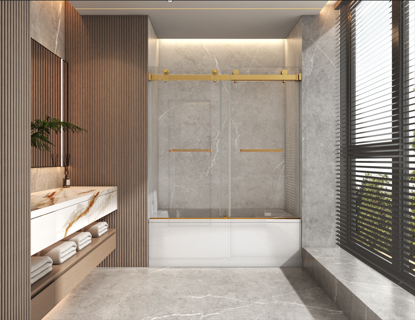 Frameless single sliding glass shower door for Bathtub